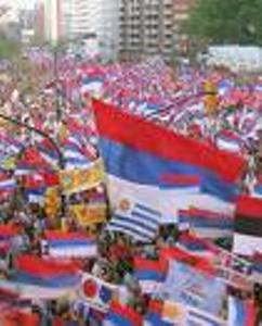La movilización enfoca también la crisis financiera internacional, que ocupará pasajes centrales de los discursos de los dirigentes obreros al término de la movilización en la Plaza Cagancha, en el centro de Montevideo.