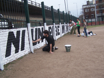 La actividad comenzó con la pintada de un mural con la consigna “Ni un pibe menos” y la realización de un taller de dibujo para chicos. Estaba programada para la finalización del taller una actuación de la murga Agru-pasión Los Verdes de Monserrat – compañeros con los que se organizó conjuntamente la jornada cultural, ya que es la plaza donde habitualmente realiza sus ensayos la murga- y la proyección de una película, pero ambas propuestas tuvieron que suspenderse cuando comenzó a llover.