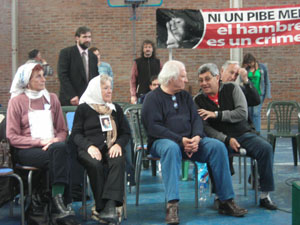 Nora Cortiñas cruzó el círculo entre aplausos, pidiendo disculpas por “no estar desde la mañana”. La dirigente de la Asociación Madres de Plaza de Mayo Línea Fundadora, se acomodó junto a De Gennaro, Elía Espen y Pino Solanas. El techo era pura luz en Pelota de Trapo.