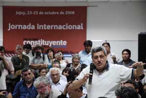 Pasadas las 18 (hora de Jujuy), representantes de centrales obreras, movimientos sociales y partidos políticos de España, Canadá, Francia, Italia, Portugal, Guatemala, Colombia, Panamá, Venezuela, Brasil, Uruguay, Chile, País Vasco, Perú, México dieron comienzo al primer acto formal de la Constituyente Social en Jujuy. La imponente sede de la Organización Barrial Tupac Amaru fue el escenario de este encuentro internacional que se inició con las palabras de Adolfo Aguirre, secretario de Relaciones Internacionales de la CTA y continuó con los agradecimientos y augurios de los representantes llegados de todo el mundo.