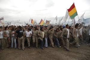 Se acerca la hora del desfile y las columnas comienzan a formarse. El espectáculo es impresionante: banderas que flamean de un lado para otro al ritmo de los bombos y las canciones creadas para la ocasión. Es como si el carnaval se hubiera adelantado con todo su colorido. La fiesta del pueblo ya comenzó y nadie quiere quedarse afuera de la alegría de los nadies que, irreverentes, quieren volver a escribir su propia historia.