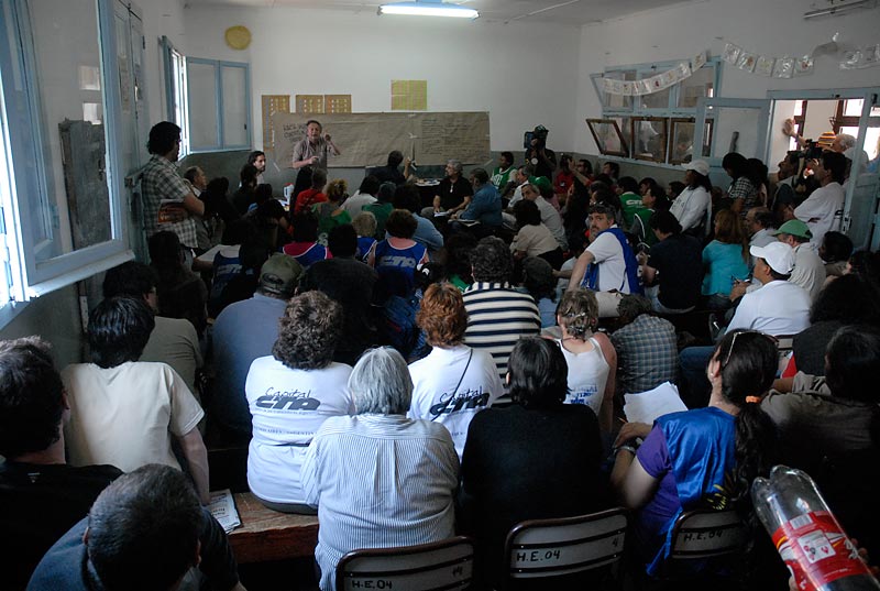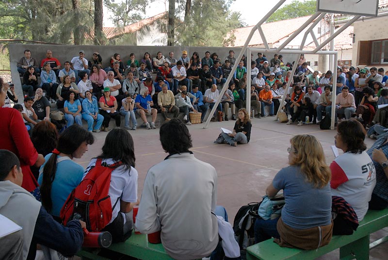 Cientos de micros y camiones recorrieron los 7 kilómetros que separan el Barrio Alto Comedero de la Tupac Amaru del centro de la ciudad de San Salvador de Jujuy. Los miles que ayer fueron protagonistas del desfile de 3 horas y media, y bailaron hasta pasada la medianoche en el festival artístico en la plaza del "Cantri" tupaquero, hoy se reencontraban en el Parque San Martín para distribuirse en cada una de la 20 comisiones de trabajo de la Constituyente Social.