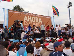 “Desde la ciudad de San Salvador de Jujuy, los 30.000 compañeros y compañeras acreditados, representando a 687 organizaciones populares de 700 localidades de todo el país, reunidos en el marco del lanzamiento hacia una Constituyente Social en la Argentina, expresamos nuestra solidaridad activa con el hermano Pueblo de Bolivia.