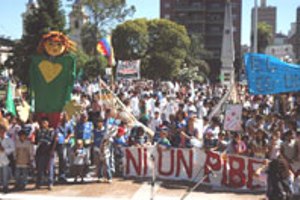 “Esta no es una marcha por la geografía del país, sino una marcha por la conciencia profunda de la Argentina”, dijo Alberto Morlachetti, coordinador nacional del Movimiento Nacional de los Chicos del Pueblo al cerrar el acto realizado ayer en el mediodía santafesino de espaldas a la Casa Gris, sede del Ejecutivo provincial.