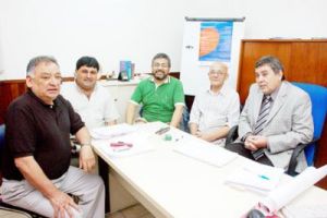 Camilo Rodríguez, José Luis Bernabé y Jesús Chirino, secretarios General, de Organización y de Derechos Humanos de la CTA villamariense respectivamente, dieron una conferencia de prensa ayer, en la sede de la Anses, junto a Guillermo Rocha, titular de la dependencia y Víctor Vedelago, presidente de la Federación de Centros de Jubilados del Interior (Fecudi).