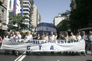 La nutrida columna de la CTA comenzó la marchar desde la intersección de las avenidas Belgrano y Entre Ríos hacia el Congreso. Encabezaron los integrantes de la Federación de Trabajadores Jubilados y Pensionados (FeTraJub-CTA) y su secretario general, Elías Moure, acompañados por distintos representantes de la conducción nacional, entre ellos: Hugo Yasky, Pablo Micheli, Víctor De Gennaro, Juan Carlos Giuliani, Adolfo Aguirre, Víctor Mendibil, Victorio Paulón, Horacio Fernández, Daniel Jorajuría, Stella Maldonado, Francisco Nenna, Daniel Barragán, Cecilia Martínez, Gustavo Rollandi, Hugo “Cachorro” Godoy, Fabio Basteiro, Roberto Baradel, Carlos Chile, Juan José Urreli, Norberto Gonzalo y Edgardo Llano.