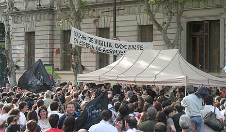 La Unión de Trabajadores de la Educación (UTE-CTA) y otros gremios docentes porteños reinstalaron este mediodía una carpa frente a la Jefatura de gobierno. Reclaman mejoras salariales y becas para los estudiantes.