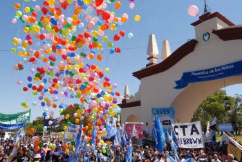 La algarabía de cientos de chicos jugando con globos por los jardines de la República de los Niños fue la imagen que sintetizó la convocatoria que la CTA y el Foro Provincial por los Derechos de la Niñez, Adolescencia y Juventud llevó adelante, y que este mediodía se transformó en una gran marcha para hacer conocer la negativa a la iniciativa oficial de bajar la edad de imputabilidad.