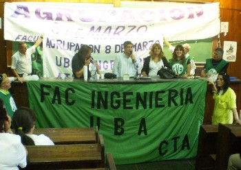 Hoy estamos reunidos aquí. Por que la democracia sindical parió un hijo nuevo que trae esperanza a nuestra gente trabajadora. Nació con el claro objeto de transformarse en las antorchas que mantienen viva a la política democrática de la facultad de ingeniería de la UBA. Esta fuerza viva y esperanzadora para nosotros que acaba de nacer se llama ATE-CTA en Ingeniería.