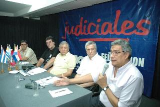 Con la coordinación del asesor legal de la Asociación Judicial Bonaerense (AJB-CTA), Antonio Cortina, quien manifestó la importancia del momento que vive Latinoamérica, donde se está gestando una alternativa popular, el panel que se explayó sobre Reformas para la democratización de la Justicia en la sede de la F.J.A. estuvo compuesto por Echerri Fernandiz, decano de la facultad de Derecho y vicepresidente de la Sociedad Cubana de Derecho Laboral y Seguridad Social; Daniel Fessler, director del Centro de Investigaciones y Estudios Judiciales de Uruguay; Mara Loguercio, ex Jueza laboral, de Brasil; Claudio Klein, coordinador de la FENAJUFE-CUT, Brasil y Daniel Giarone, Secretario de Prensa de la Asociación Judicial Bonaerense.