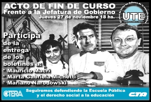 Además la UTE-CTA adelantó que mañana a las 18.00 realizará frente a la Jefatura de Gobierno el "Acto de fin de curso".
