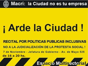 "A casi un año de gestión de Gobierno de Macri, las más de 100 organizaciones populares de la Ciudad de Buenos Aires que componemos el Espacio Multisectorial nos encontraremos en la CTA Capital para realizar un balance de la gestión PRO y marcar las prioridades que contienen nuestra agenda así como también las acciones necesarias para llevarlas a cabo.