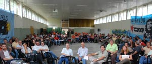 Cerca de 200 delegados de 65 organizaciones y 47 distritos bonaerenses comenzaron de esta forma el primer encuentro provincial hacia la Constituyente Social después de Jujuy. El escenario fue el salón Multiespacio de la parroquia “Don Bosco”, en el barrio platense de Los Hornos. Y el debate se desarrolló sobre tres ejes de discusión fundamentales: el balance de la experiencia vivida; las próximas acciones y las propuestas de organización para seguir construyendo.