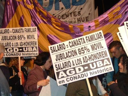Finalmente, la CONADU Histórica se pronunció por el desprocesamiento de los 10 estudiantes de la FUBA, y resolvió participar el 12 de diciembre en la Marcha Nacional a Plaza de Mayo convocada por la CTA y el Movimiento Nacional de los Chicos del Pueblo por la distribución de la riqueza, asignación universal por hijo, aumento a los jubilados, prohibición de los despidos, aumento del consumo de los sectores populares y defensa de los recursos naturales.