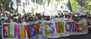 “En un país que esta hecho de trigo, no puede existir un niño sin la ternura del pan, juntos gritemos ni un pibe menos, con ternura venceremos, vamos todos a marchar.” Fragmento de la canción de la marcha el hambre es un crimen.