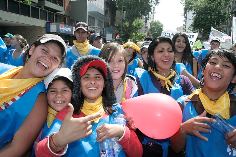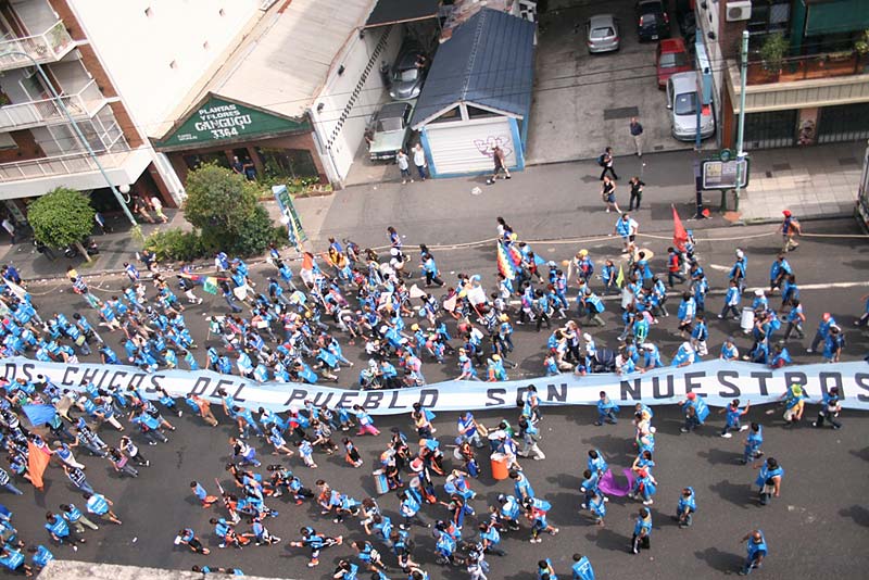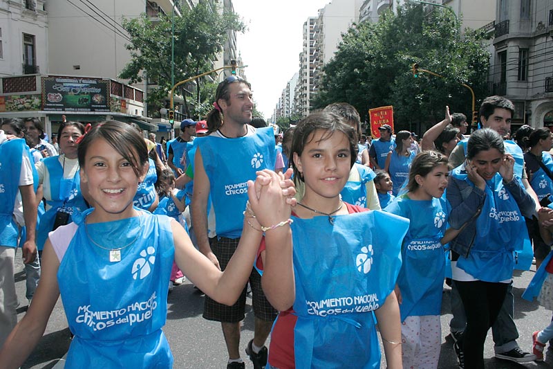 A medida que iban entrando a la plaza, las columnas eran nombradas por los conductores, que desde el escenario podían vislumbrar como serpenteaban las banderas y los chalecos de todos los colores. Los chicos estuvieron bajo el palco principal, acompañados por los educadores del Movimiento y los abrazos y caricias de los miles que se acercaban hasta ellos. Atrás quedaron las más de 40 cuadras caminadas bajo la resolana del verano porteño.