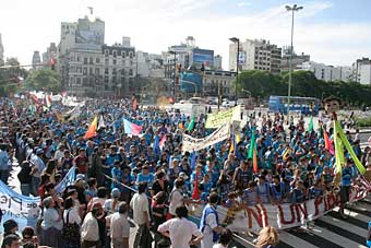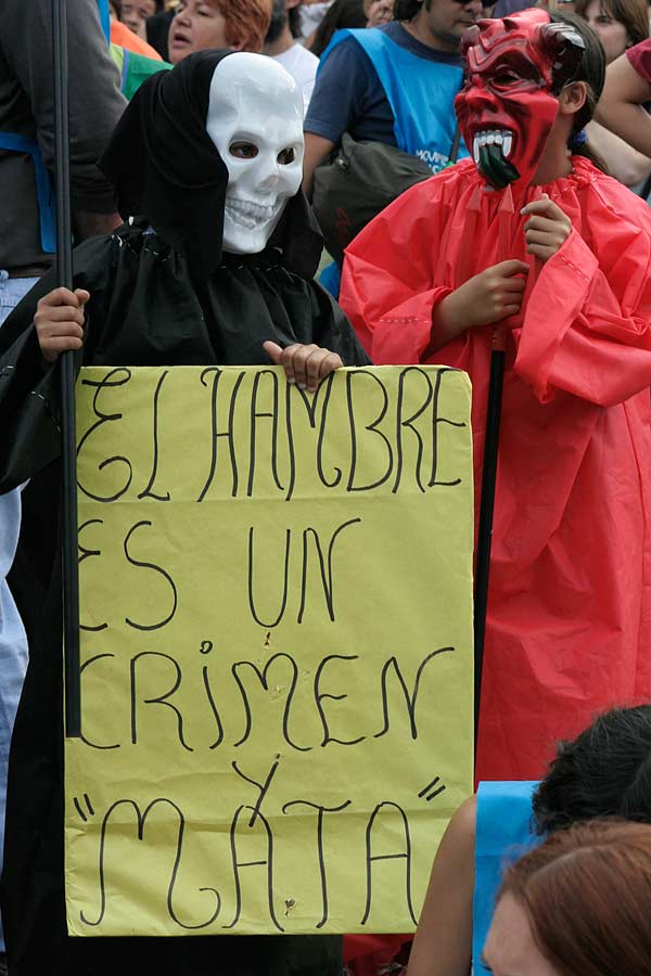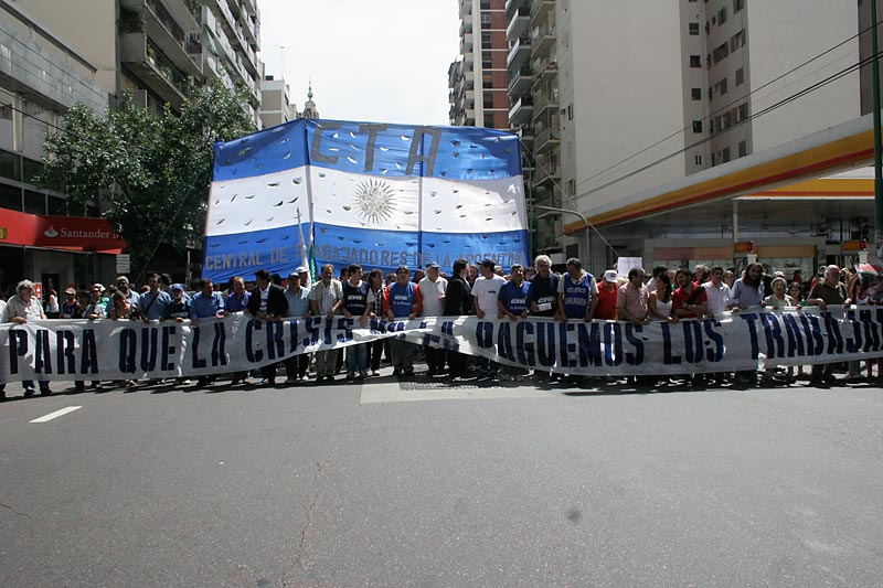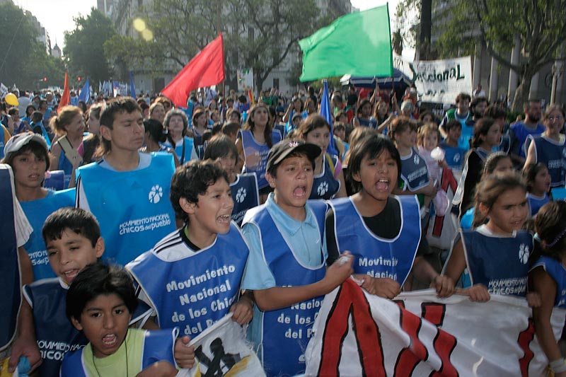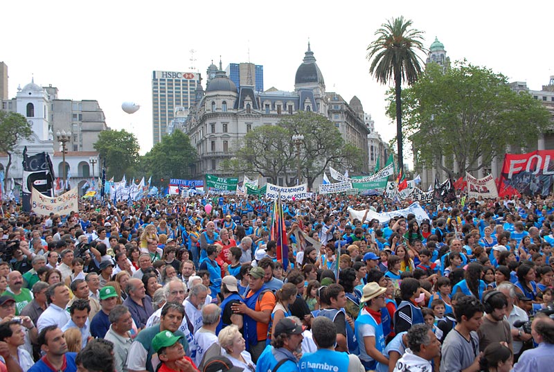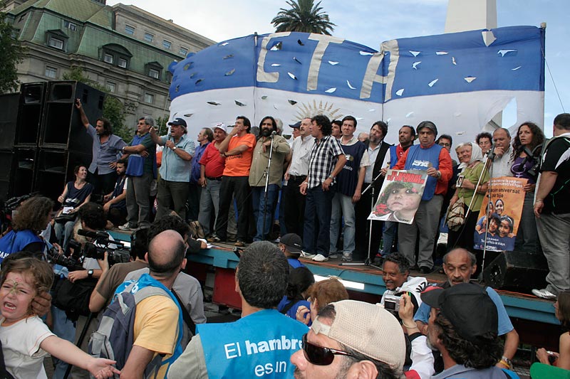 “El hambre es un crimen” y “para que la crisis no la paguen los trabajadores”, fueron los dos gritos que hoy se hicieron escuchar en la Plaza de Mayo. Más de 50 mil manifestantes llegaron hasta allí, desde todos los rincones del país, en el marco de la convocatoria de la CTA y del Movimiento Nacional de los Chicos del Pueblo. Una justa distribución de la riqueza y la implementación inmediata de una asignación universal para todos los niños y niñas de nuestro país fueron los reclamos de los trabajadores y los chicos reunidos en la histórica plaza.