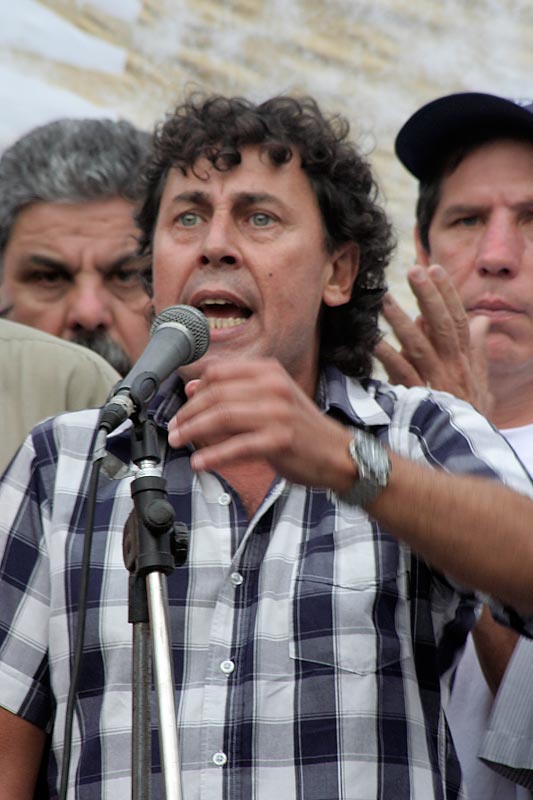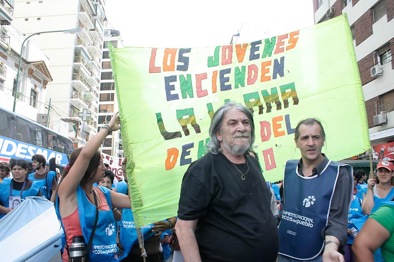 El primer orador del acto fue el secretario general adjunto de la CTA, y titular de la Asociación Trabajadores del Estado (ATE-CTA), organización que cumplió hoy un paro nacional de 24 horas. Pablo Micheli reconoció que “hoy estamos aquí, felices, porque los trabajadores asumimos el compromiso de abrazar a nuestros pibes. Y lo hacemos a pesar de la tristeza que nos genera que los golpeen, la tristeza que nos da los secuestros y las torturas. Lo que pasa es que no se bancan que desenmascaremos un país que se construye sobre 13 millones de pobres, la mayoría de ellos chicos”.