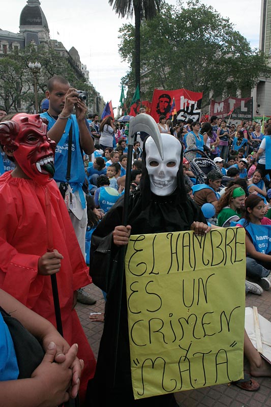 El dirigente también indicó que “el hambre es un crimen, que el hambre está planificado” y expresó: “Para que el hambre exista en este país, que está hecho de pan, tienen que haberlo inventado. El hambre es inherente a este sistema capitalista, y tiene responsables, que tienen nombre y apellido. Esos son los verdaderos criminales. Y también están los responsables, los que no aplican políticas universales que terminen con el hambre. Los responsables son los gobiernos que no quieren distribuir equitativamente la riqueza que generamos entre todos”.