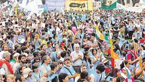 POR LOS CHICOS. MILITANTES DE ORGANIZACIONES POLITICAS Y SOCIALES, AYER,OCUPARON MEDIA PLAZA. PARA LOS ORGANIZADORES, HUBO 50 MIL PERSONAS.
