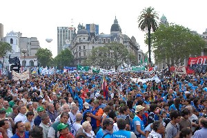 Entre bombos, fuegos artificiales y coloridas pancartas, el secretario general de ATE, Marcelo Frondizi, explicó: “Los trabajadores y los pobres de este país han salido a pedir que no haya un chico más que sufra hambre y que la crisis la paguen los grandes grupos económicos”.